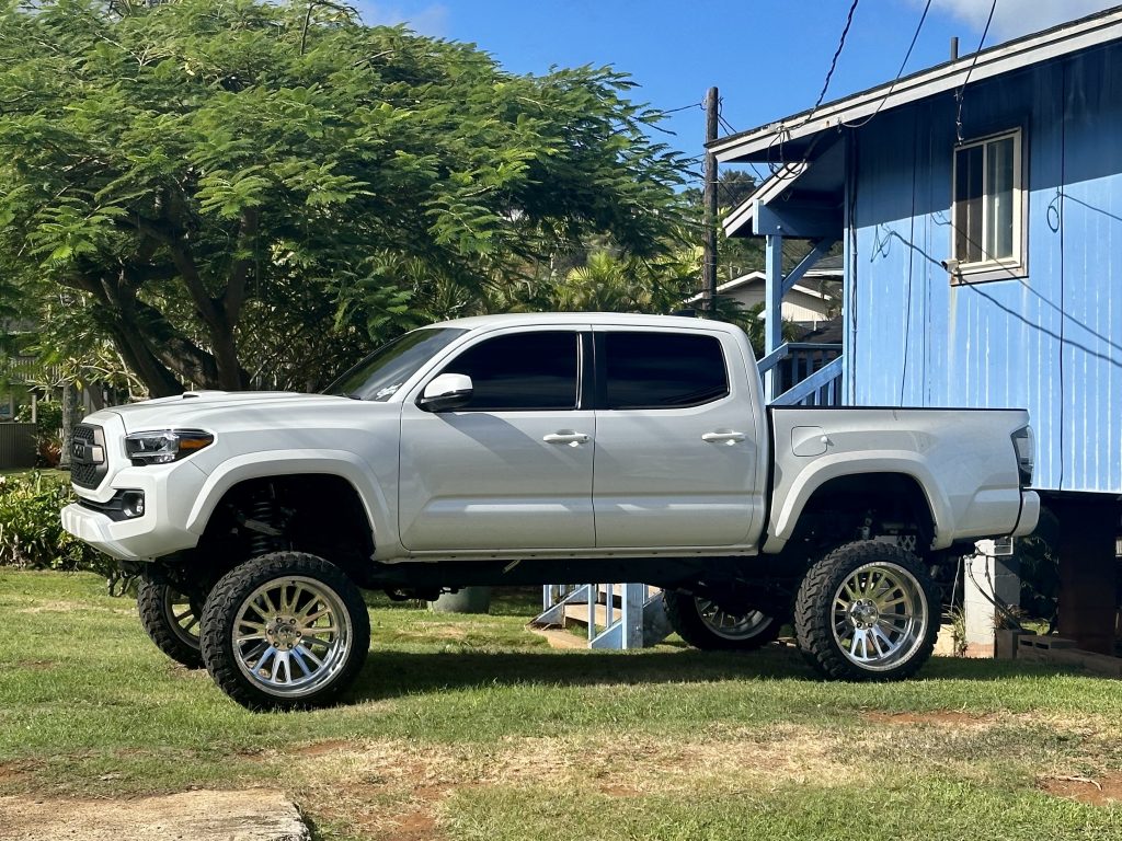 After enjoying a bit of scenery we head back into town and along the beach and then the harbour wall, before going home. One of the strangest sights is these jacked up pickups the American’s love!