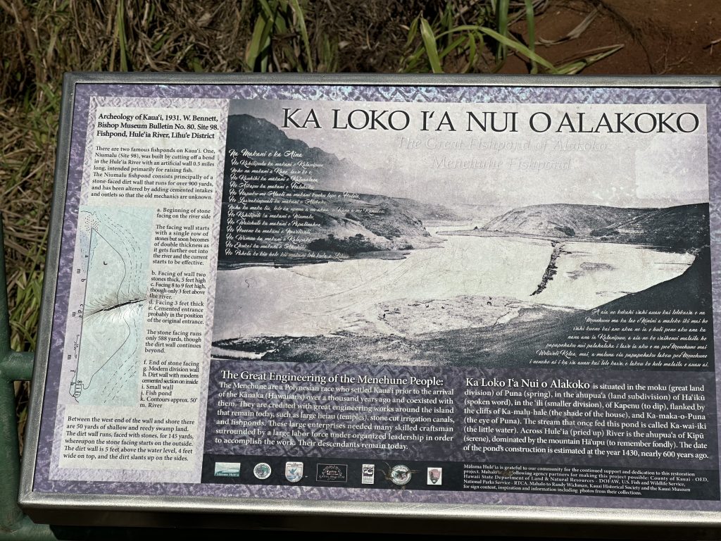 Because of the terrible fires in Lahaina, we are not visiting the island of Maui. Instead we get an overnight and second morning in Nawiliwili, so we wander off to check out the view over 1000 year old fish ponds, apparently the also place the original Indiana Jones film’s opening shot was made.