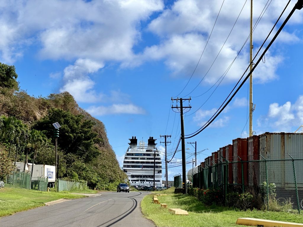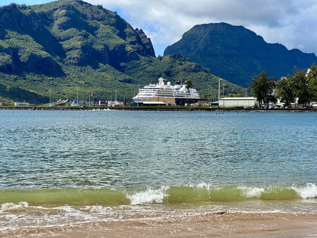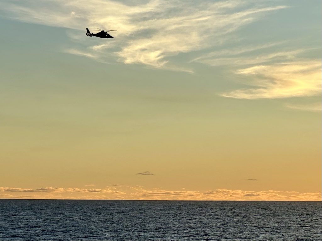 We’re not long after lunch and sailing away from Nawiliwili when Captain tells us we’re turning around because of a medical emergency. Soon after we get a second update that in fact we’re now heading towards Honolulu, clearly the problem has worsened. Later yet we’re told an emergency evacuation is to take place, a helicopter is already on its way.