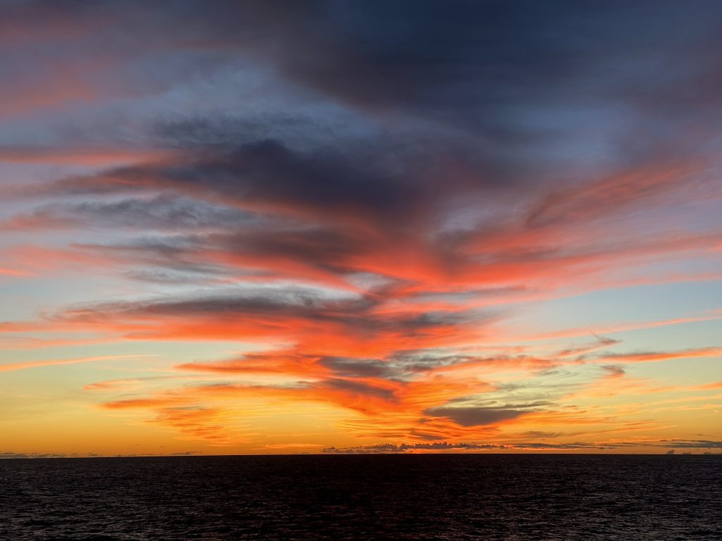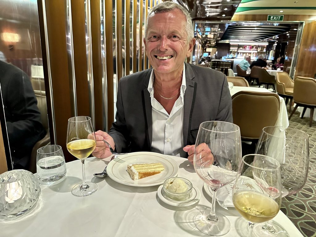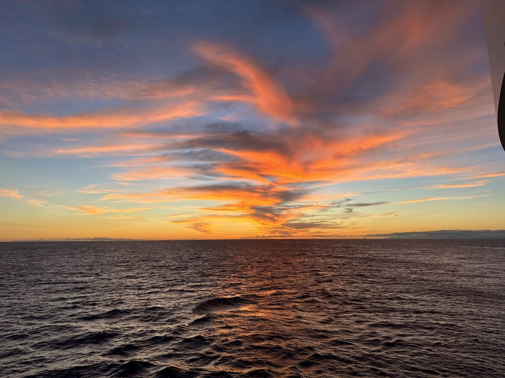 We observe staff making various preparations both on a rear section of deck and also on the forward deck. Forty minutes later we are told to clear all decks, return to our cabins and remain well away from our balconies. Eventually we’re told the evacuation went to plan and the patient and their spouse are on the way to hospital. We wish them well.