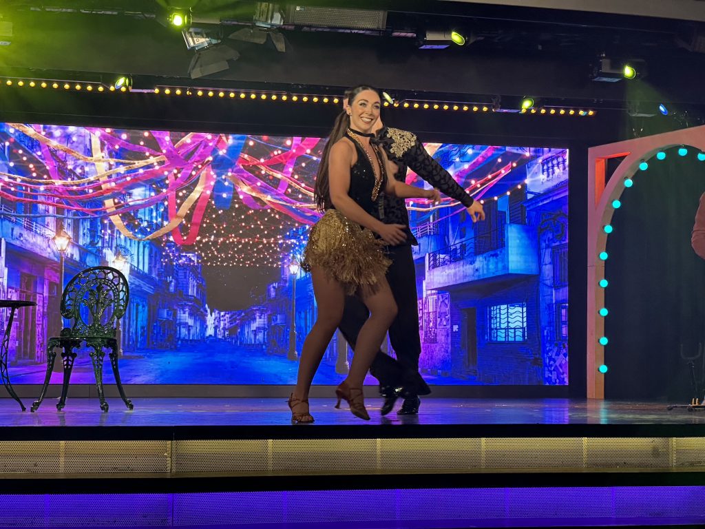 Dinner is in the posh grill again, fabulous duck and lamb tonight. And then showtime is called Latin Quarter, you can probably guess what flavour the music and song was!!
