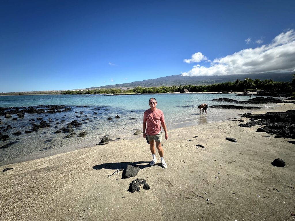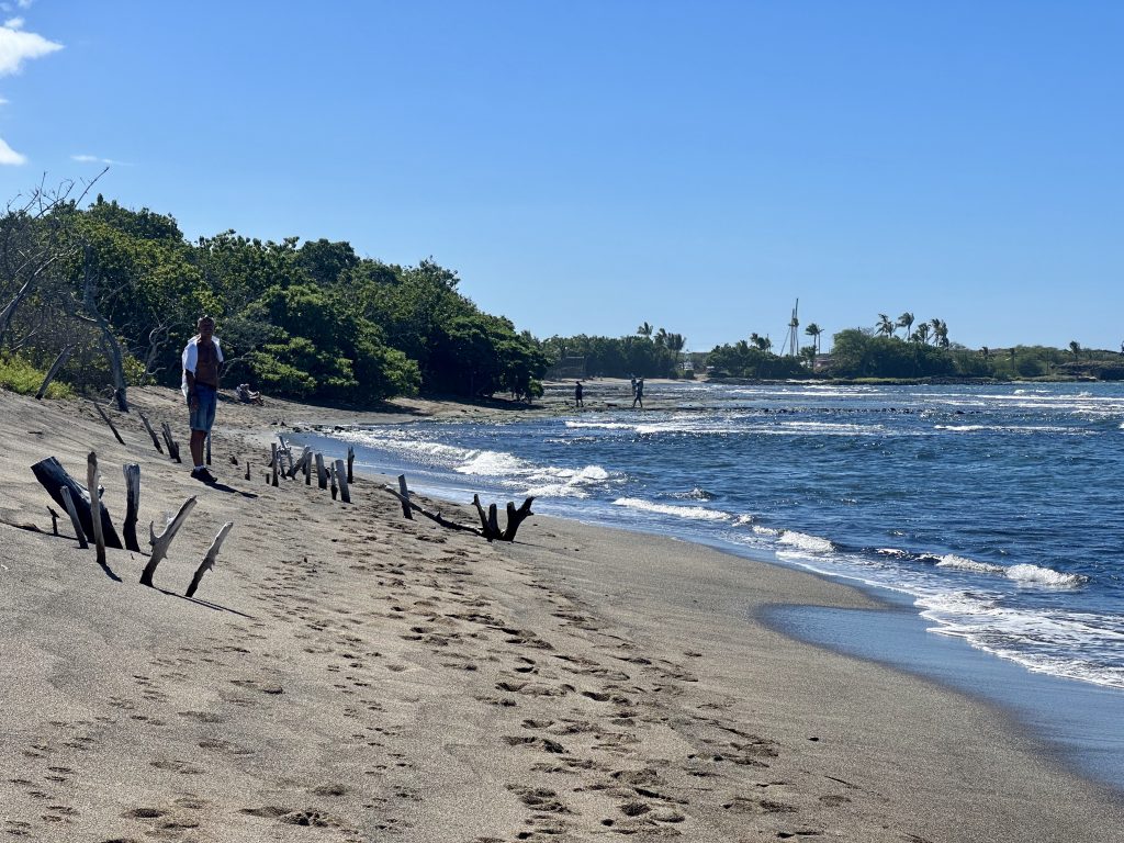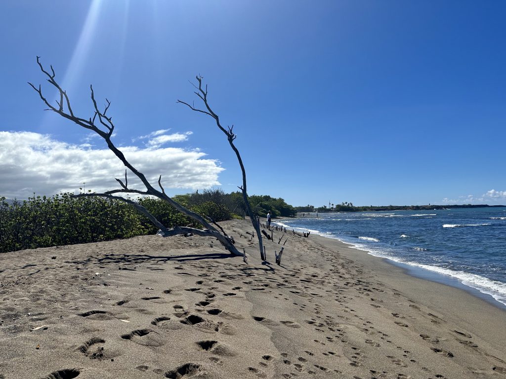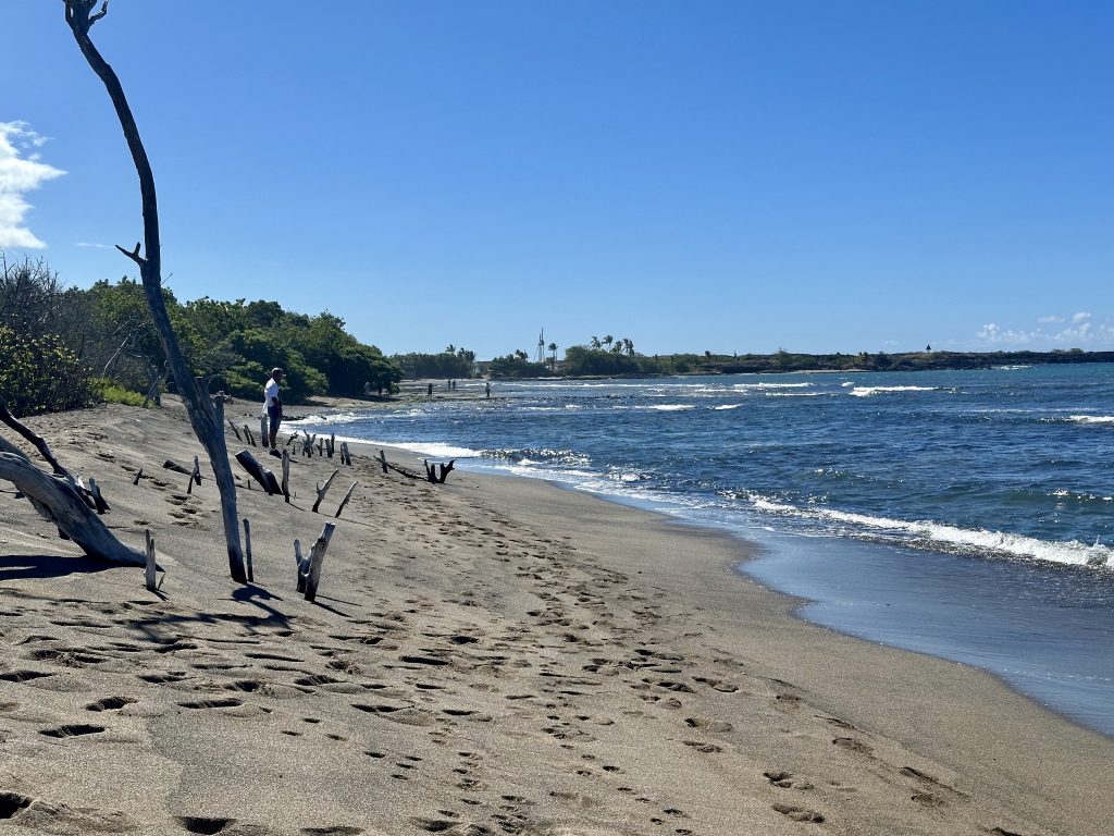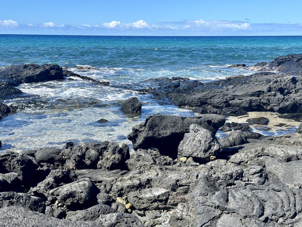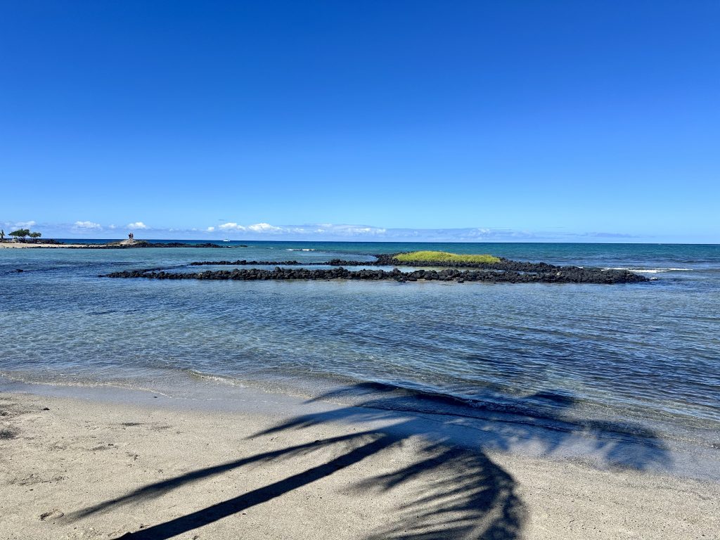 Kaloko-Honokōhau park is significant as it has a fishtrap – how the locals caught fish several thousand years ago by letting the abundant fish swim into the walled enclosure at higher tide and then net the narrow exit to collect them, sometimes transferring them to nearby fish ponds until needed. We explore the coastline, walking up to the first pond before backtracking, pleased to see some turtles making their way inland in the shallows.