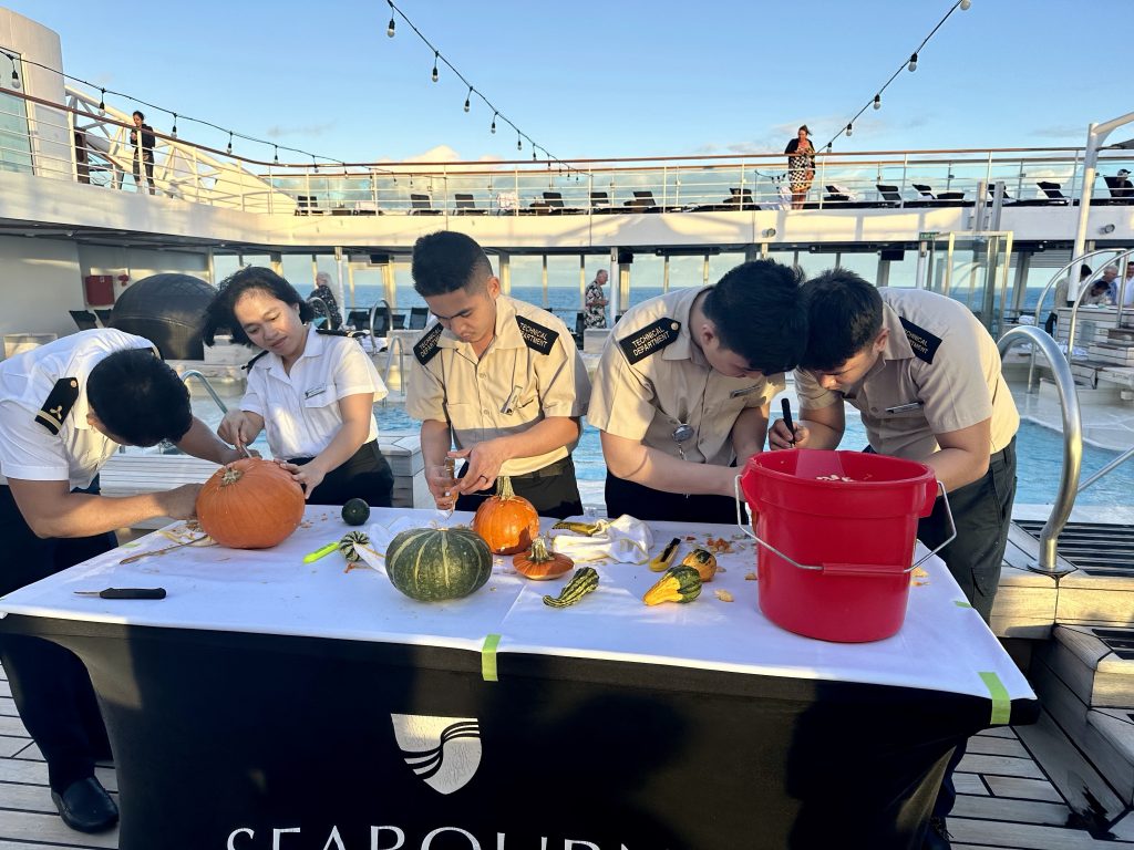The afternoon sees a pumpkin carving competition and later some folks are in Halloween dress. We enjoy several ghoulish cocktails, but swerve the after dinner dance party!