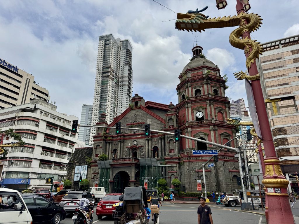 After a lot of fortification we decide to take a break from Intramuros and cross the Pasig in search of Chinatown. This takes us in an overpass, over a crash barrier and down a slip road into some very poor areas. Soon we pass the National Shrine of Saint Lorenzo Ruiz (Binondo Church) and head towards Happy Chinatown Mall.