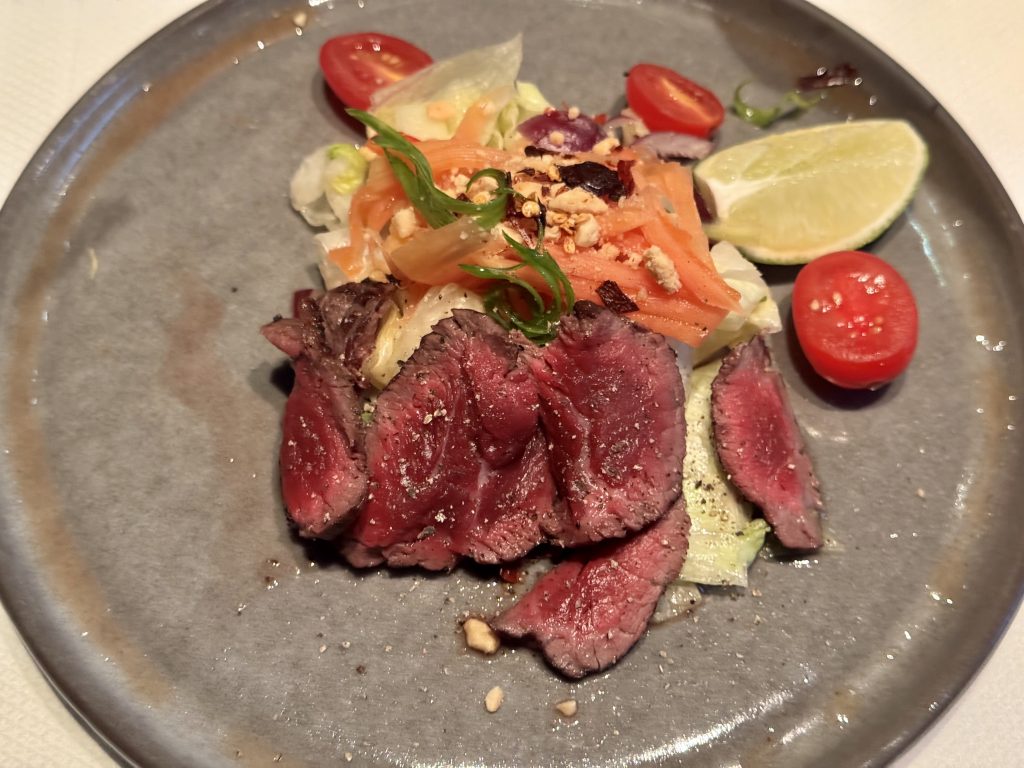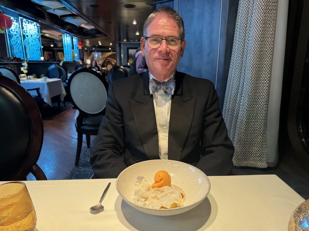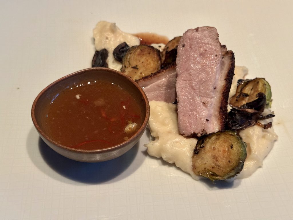 Dinner is a special order – like the shortage of lamb in Tenerife, buying duck is even more difficult, so we charge Chef with making us duck in plum sauce, which he does expertly. The whole dinner is perfect of course, but the duck is wonderful!