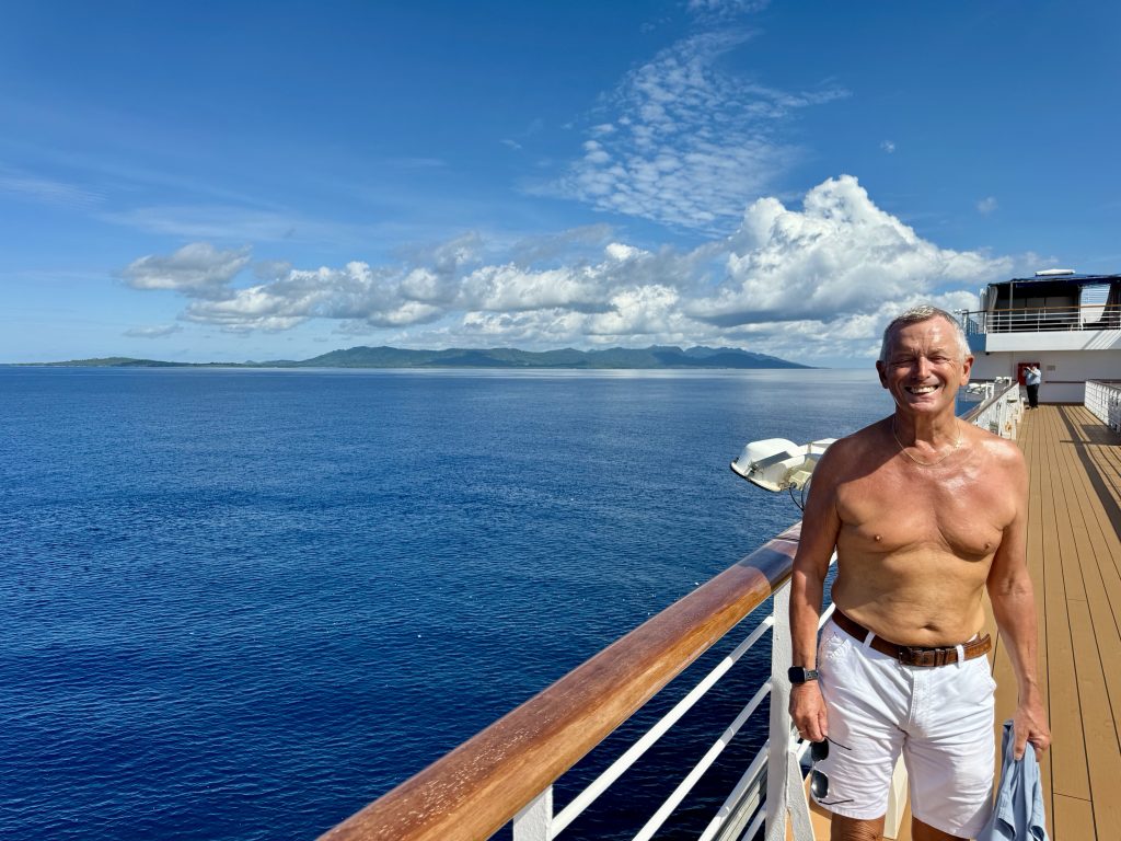 All at sea but within sight of land. Last night we left Koto Kinabalu and sailed with Borneo insight, until, as we are walking deck ten, we start to see Balabac and then Palawan. The later is 450 km long and will be visible all day today and tomorrow as it’s capital is our port tomorrow.