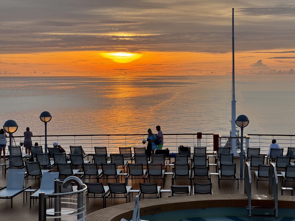 Before walkies we have to get tested by the Filipino authorities. This involves walking along the corridor in pairs being watched by a heat-sensitive camera, anyone running a fever pulled out and will not be seeing the next few day’s ports of Puerta Princessa and Manilla. I checked the CDC website and Westerdam does not have any health alerts so it’s mostly for precaution although we did see a couple of people at the supplementary section which we weren’t invited to visit.