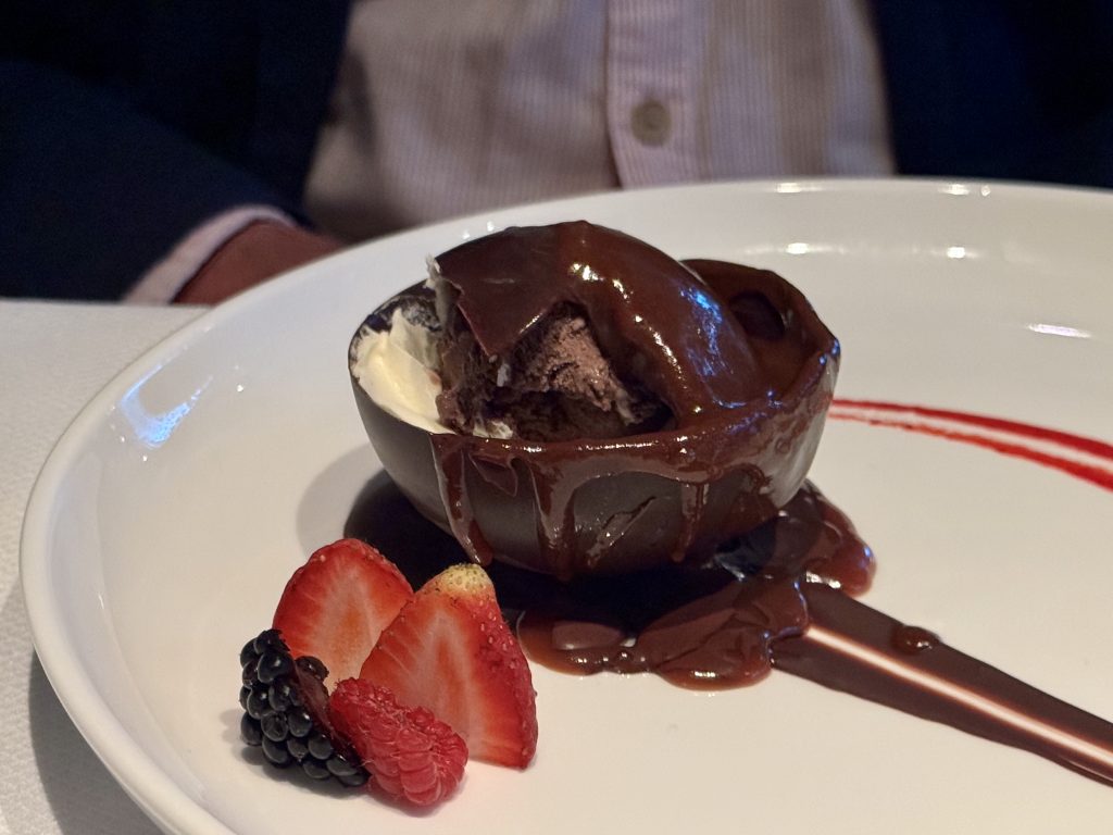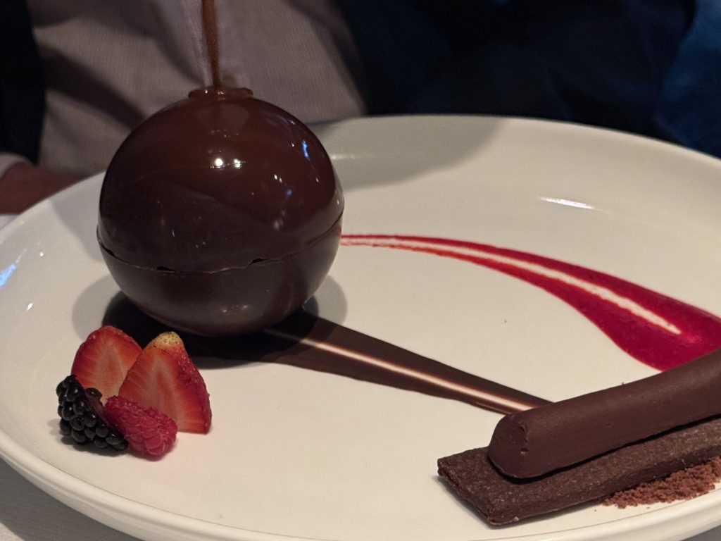 We finish off by swapping our previous choices, Mark has the dark chocolate sphere and I have the white chocolate ganache. Both are delicious.