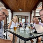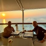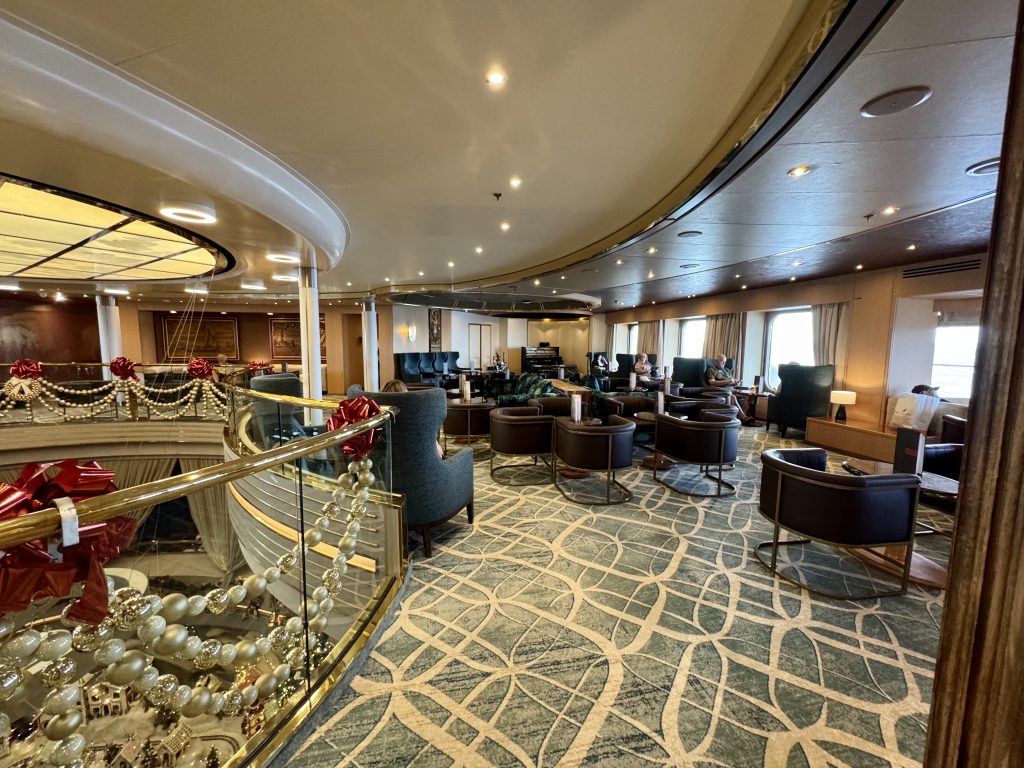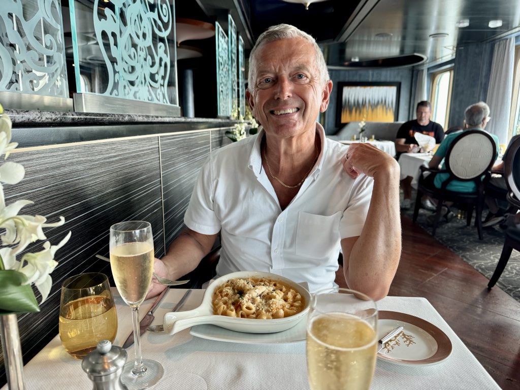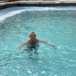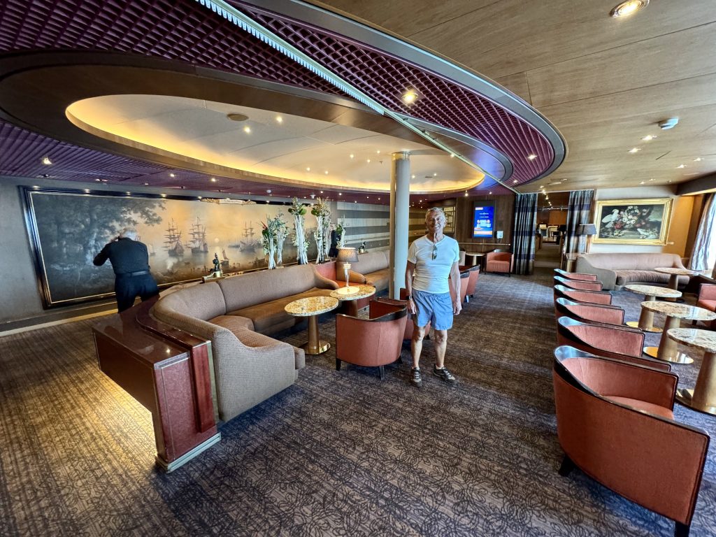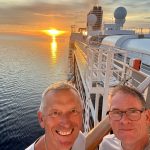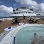 We have come across some delightful people this cruise. As well as those Ten Pound Pommes we met a few days ago and have since spoken to regularly, we have pre-dinner drinking friends who learned to dive with Jaques Cousteau’s children on Calypso, and yesterday we met with a Seargent Major who sailed back from the Falklands on SS Uganda, my first cruise ship. Today we’ve chatted with a fascinating infectious diseases consultant and his lovely wife, in a regular meeting place – the jacuzzi of course!