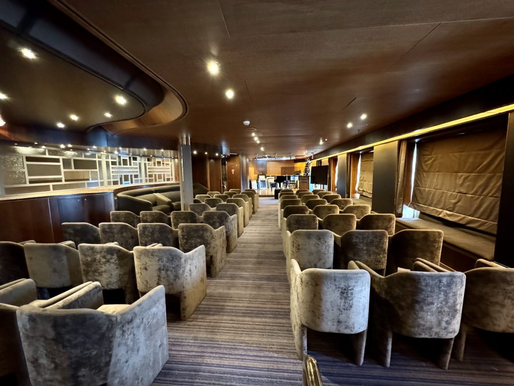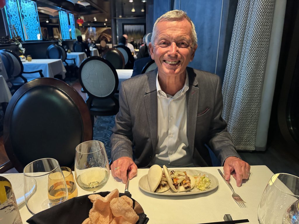 Our final dinner has to be lamb as we are unlikely to have any for a while, and it doesn’t disappoint. We take great pleasure in thanking all those wonderful Pinnacle staff who have served us over the last 28 days. Frans, the mâitre d’Hôtel, drags chef out to talk to us again, he’s a bit out of his comfort zone but we are genuinely appreciative with our compliments.