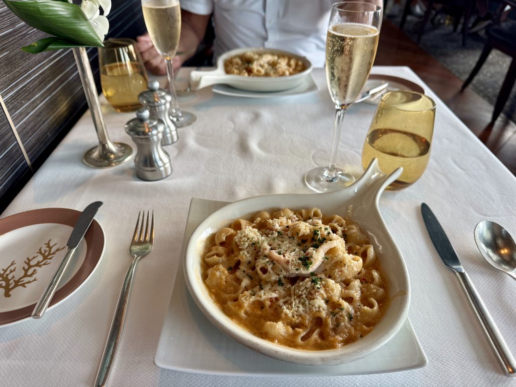 For lunch we try to recreate a Thomas Keller moment with lobster mac’n’cheese and Nicolas Feuillatte champagne. It’s an excellent and memorable success. Crème brûlée is the perfect pudding.