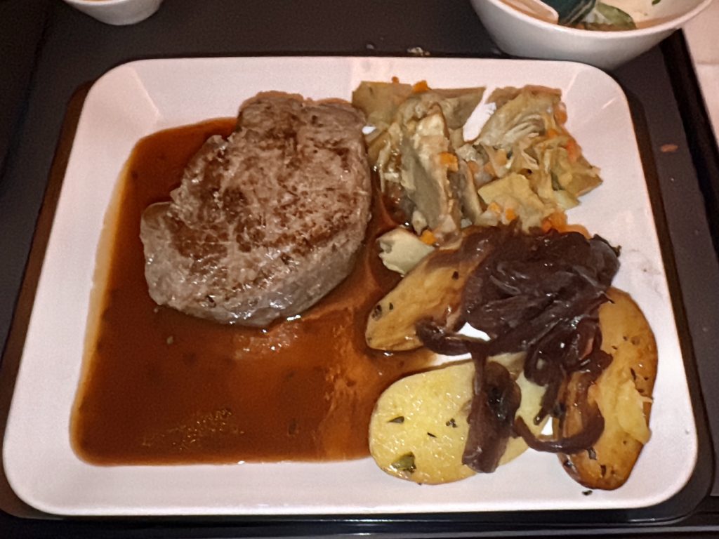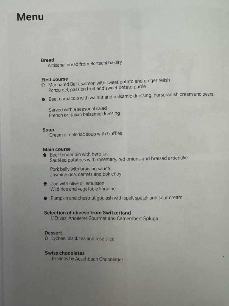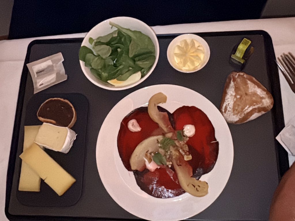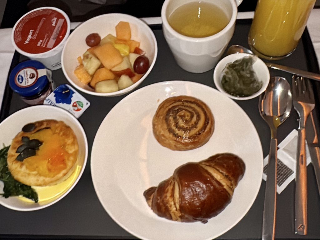 Dinner is served just after midnight, and once again Swiss doesn’t disappoint. The six-course meal is very good, A combination of great flavours, presentation and preparation. The wine selection is also good, a few more choices than the Edelweiss brand, with a broader international representation.