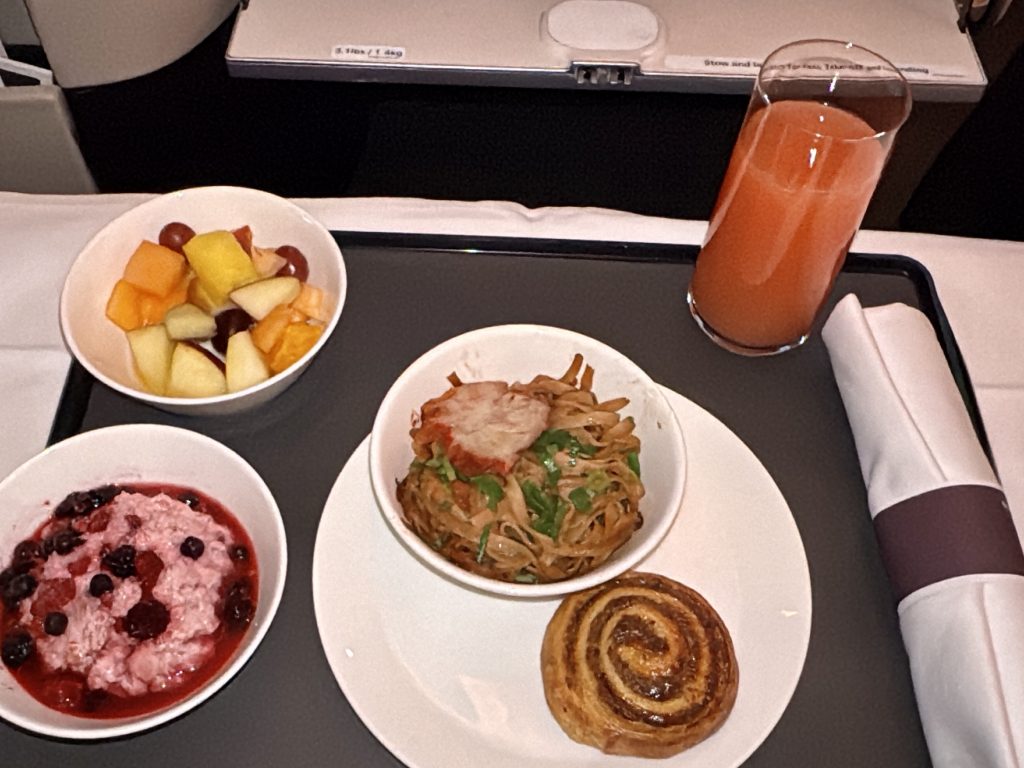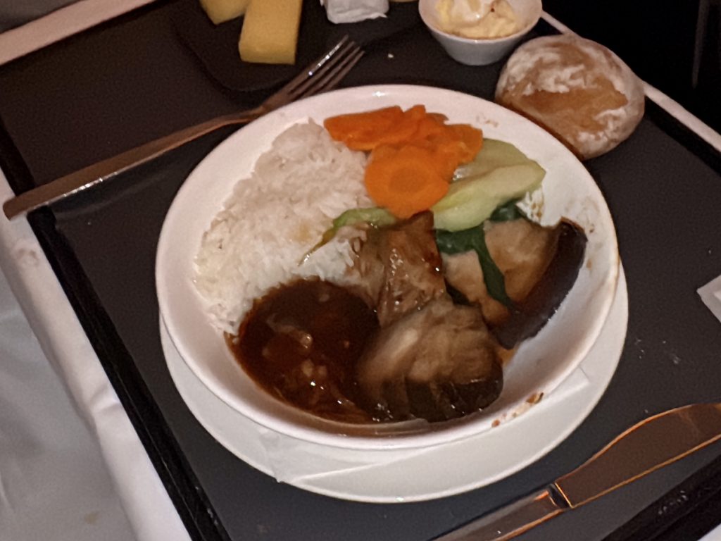 Sleep was intermittent, I know I managed three hours, but that’s probably enough anyway. A few films and my current book provided enough to while away the remaining time and it doesn’t seem too long before we’re being served breakfast which is weird given that we land at 17:30 HK time! Maybe afternoon tea could have been a better option?