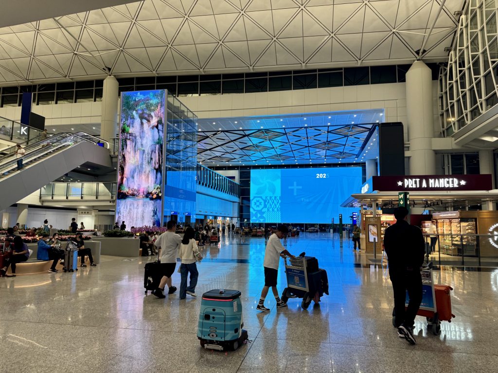 We’re amongst the first off the 777 and it’s quite a walk to immigration. It’s amusing to see a line for HK nationals and further away one for visitors, but they then merge into a single queue for processing. Even more amusing is that as this line grows, immigration staff keep closing their booths and walk away, so the people behind are going to wait quite a while. We’re through this enormous airport in about 20 minutes and as a consequence our bags are waiting for us. From landing to being picked up by our driver is about 40 minutes, and it takes as long again to get to our hotel on HK Island, passing huge tower blocks as drive in – not bad!