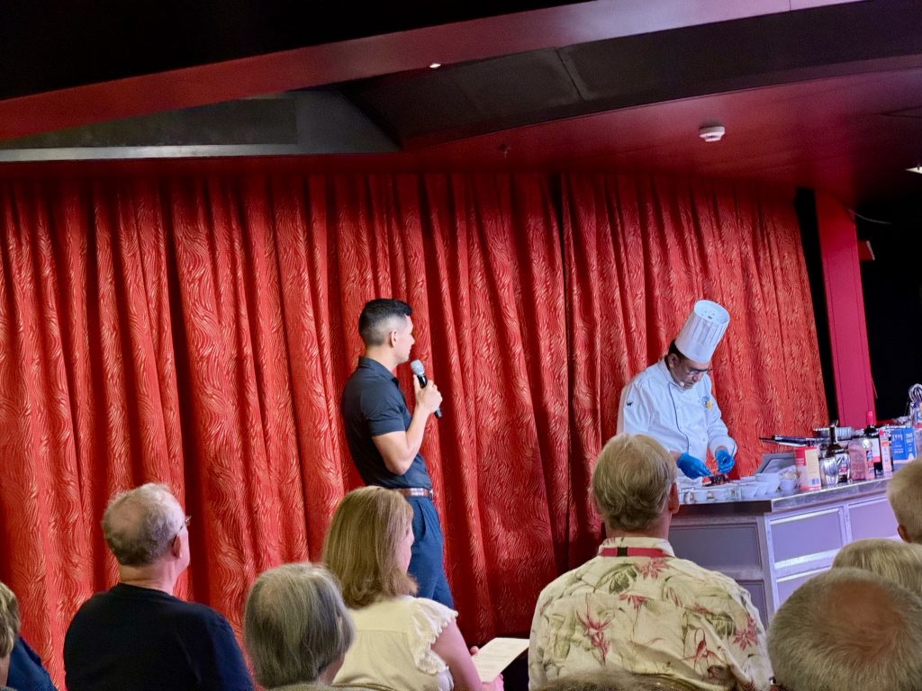 We finish walking just in time for me to get to the 11:00 cooking show. Today it’s beef short rib. I do a similar recipe but it’s interesting to see chef’s interpretation.
