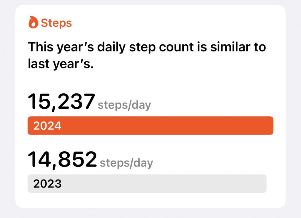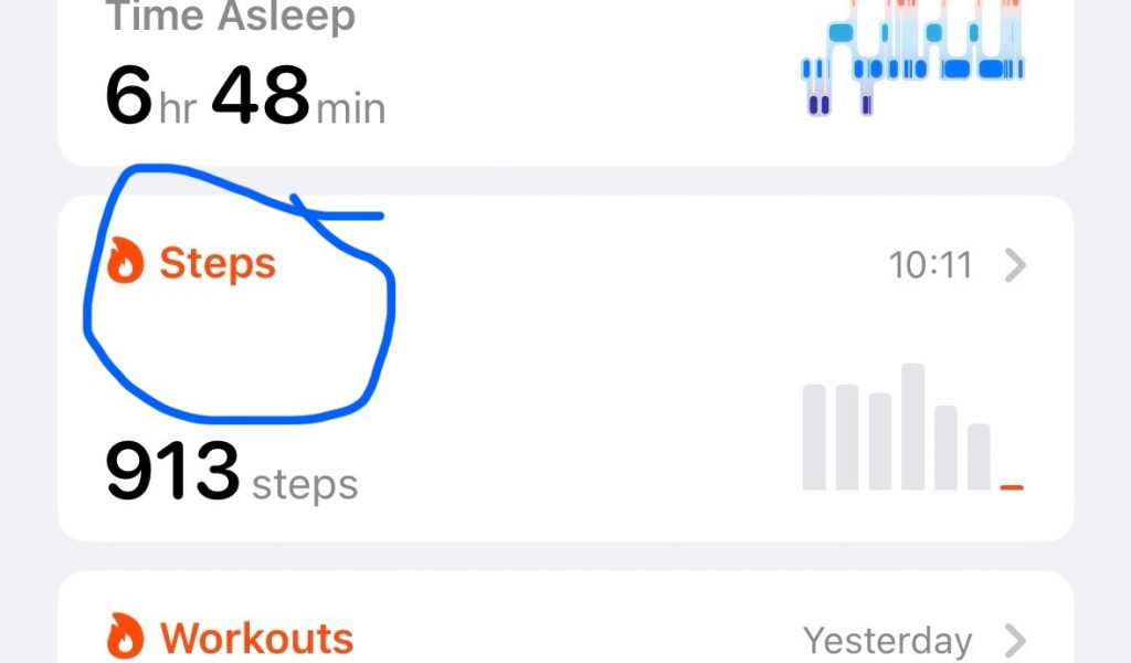 Go to the health app and tap steps. Scroll down to the annual section and note today’s figure (15237 in the example.)