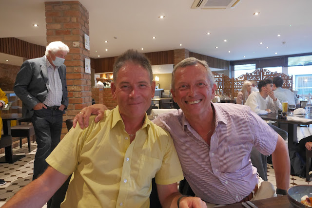 We continue into the headwind all the way to Branksome Beach and the restaurant there, ably managed by the same old school friend we met earlier in the week, so I know it will be good. Indeed we enjoy traditional fish’n’chips as only the seaside can deliver – absolutely scrummy, cheers Richard.